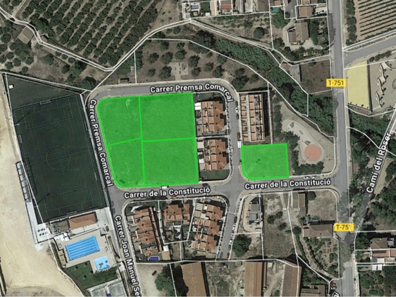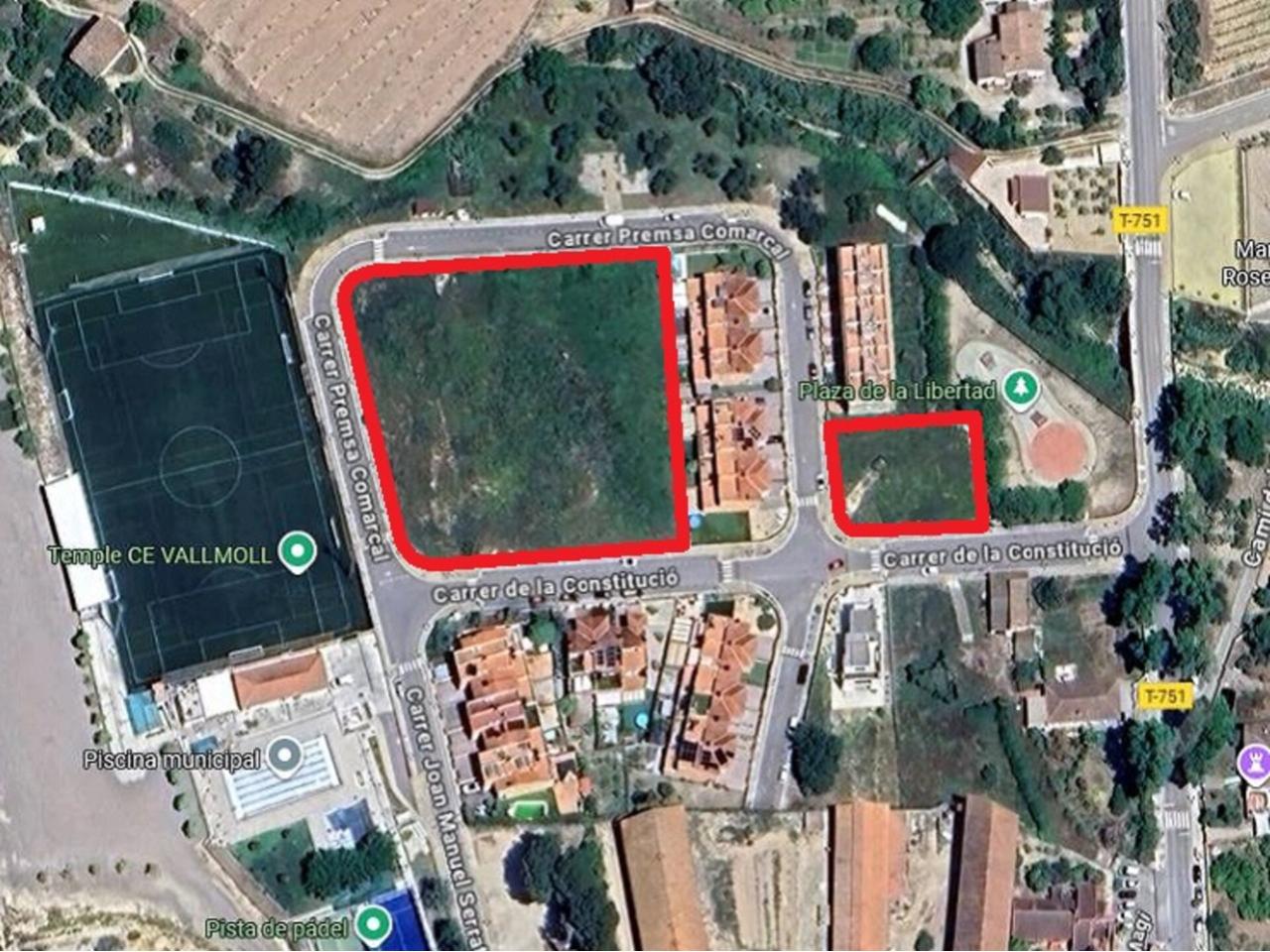 Suelo urbano residencial en Vallmoll, en zona residencial con todo tipo de servicios cercanos, bien comunicada mediante la N-240 y la A-27 y a 5 min. de Valls y a 15 min. de Tarragona y de la A-7 y AP-7. Formado por un lote de 5 parcelas con un total de 5.871 m2 de suelo. Número alturas: B+I. Retranqueos: 5 m. a viales y 3 m. a resto linderos. Para la promoción de 24 viviendas adosadas de unos 150 m2 contruidos, más porches y terrazas y parcela propia. Registralmente se encuentra inscrita la División Horizontal de las 24 viviendas. Oportunidad.
